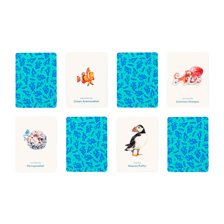 Under the Sea er et sjovt og simpelt huskespil, hvor det gælder om at finde par af havdyr – fra delfiner og søpindsvin til klovnfisk og lundefugle – samtidig med at du træner hukommelsen og observationsevnerne. Spillet indeholder 50 smukt illustrerede kort med dyreliv fra verdens have og et medfølgende hæfte af naturforfatteren Mike Unwin med spændende fakta om fisk, pattedyr og krebsdyr.