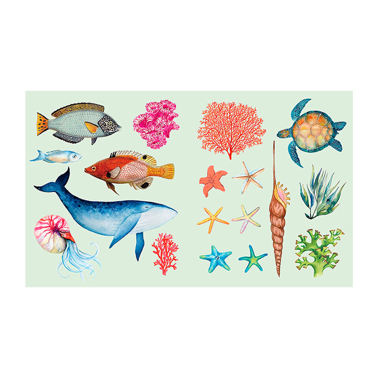 Dyk ned i en fantastisk undervandsverden gennem 600+ klistermærker. Om du er en kunstner, dekoratør eller samler, kan du fordybe dig i de flotte, farverige klistermærker, der viser alt det smukke, utrolige og fredfulde ved marinelivet. Fra spektakulære muslingeskaller, søstjerner og koraller til vidunderlige fisk, skildpadder og blæksprutter. Du kan endda gå på opdagelse i de dybhavsmysterier, der gemmer sig blandt flaskeposter, skattekister og forladte ankrer.