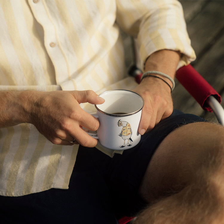 Den klassiske emaljekop med blå eller sort kant er blevet en ikonisk kop, der associeres med fiskeri og sømandskab. Oprindeligt fremstillet af stål belagt med smeltet glas (emalje) er den yderst modstandsdygtig over for slag og tab - og derfor perfekt til livet på et gyngende dæk.