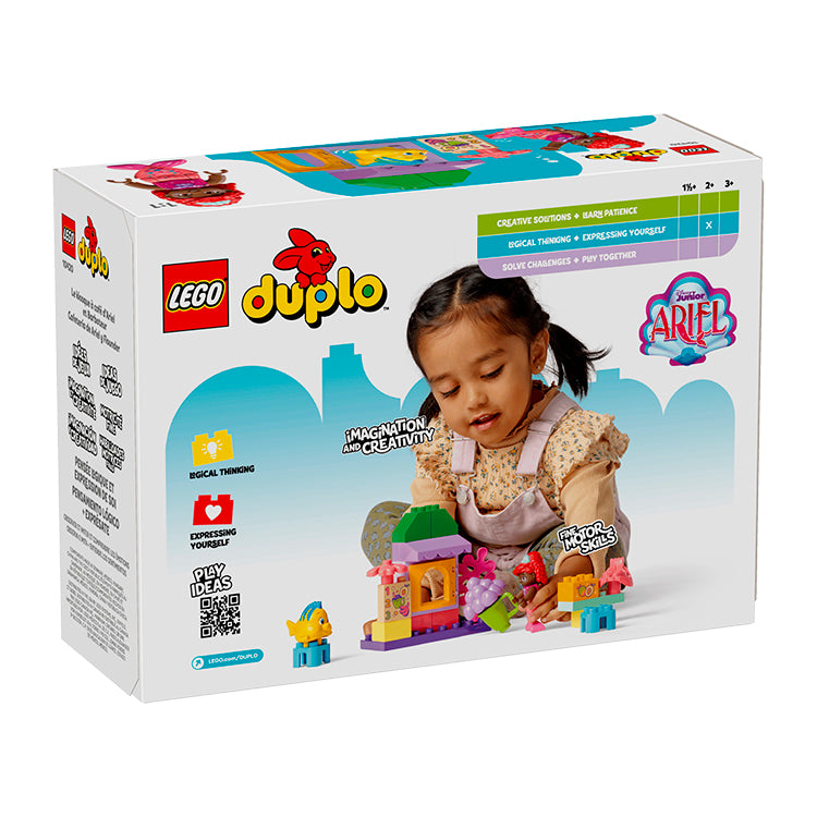 Læringslegetøjet inspirerer fantasien og kreativiteten, så voksne og børn kan dele lærerige øjeblikke. De mindste observerer og efterligner, når de skaber eventyr for de 2 LEGO DUPLO figurer, Ariel og Tumle. De begynder at forstå følelser, når de snakker om, hvad en karakter måske oplever i legesituationen. Det lærerige byggesæt hjælper også med at udvikle logisk tænkning, når små børn samler klodserne, der er nemme at håndtere, for at genskabe scener fra tv.