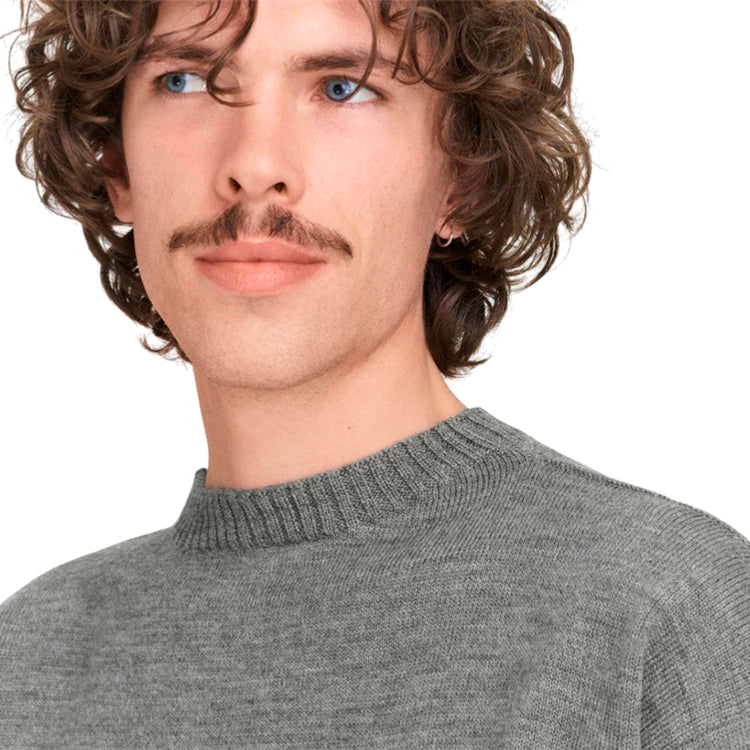 Sweater i gennemarbejdet merinould fra Andersen-Andersen. Sweateren har rund hals og symmetrisk pasform, hvilket gør, at den ikke har en for- og bagside. Den har en ekstra lang ribkant ved ærmerne med hul til tommelfingeren, for at holde sweateren på plads og hænderne varme.