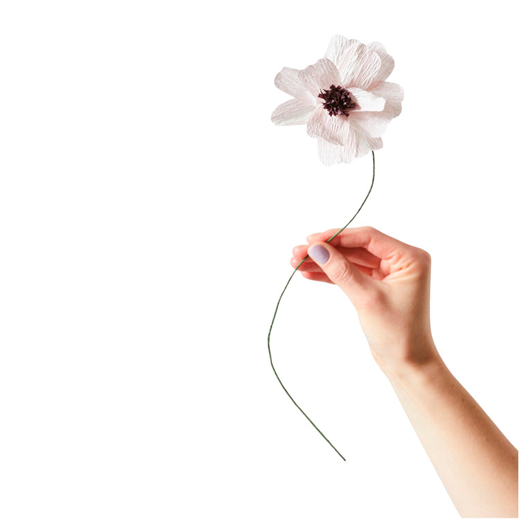 Denne fine blomst er lavet af gennemfarvet crepepapir og monteret på en lang, bøjelig grøn stilk. Stilken kan du let forme, så du kan få den form og længde du ønsker. Som papirblomst kan margueritten pryde dit hjem året rundt.